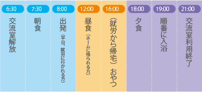 利用者様1人1人に合った個別の援助を行います。 相談・入浴・排せつ・食事の介助や健康管理・金銭管理の支援、ご家族・就労施設との連絡調整。 その他日常生活に必要な支援を行い、孤立の防止、生活への不安の軽減に努め、利用者様が安心して地域生活を送る日常の場を提供します。